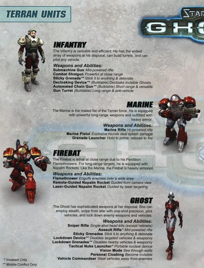 - For StarCraft gameplay information see: Ghost (StarCraft).