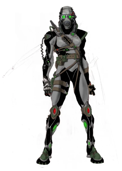 Ghosts channeled their psionic energies through their hostile environment suit, a specialized skinsuit laced with psi-sensitive artificial muscle fiber, to augment their physical capabilities.[9] A cloaking device and requisite power supply were frequently issued as well;[1] the device requires psionic energy as a component.[3][10]